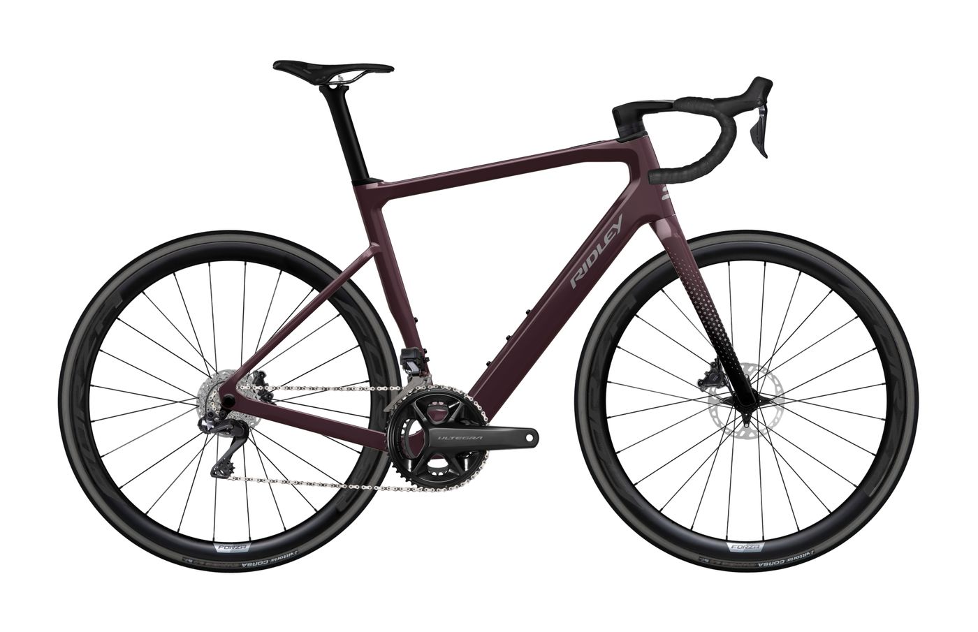 Für den E-Grifn entscheidet sich Ridley für eine etwas breitere Reifenfreiheit im Vergleich zum Grifn. Mit 42 Millimetern bieten sie in der Regel ausreichende Möglichkeiten, eine Vielzahl von Schotterhindernissen zu bewältigen. Dies gewährleistet ein Gleichgewicht zwischen Geschwindigkeit und Wendigkeit einerseits und Komfort und Stabilität andererseits. Natürlich können Sie auf der Straße bei Bedarf problemlos Räder oder Reifen wechseln, um sich für schmalere zu entscheiden.