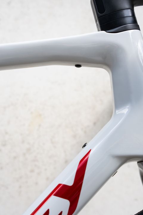 The fork crown has an integrated diffuser to reduce drag. The airflow passes more easily through fork crown while extra energy is added to it. The result is that the airflow passes the downtube more easily without pushing the bike back. At the same time there is less drag in the area behind the fork and headtube.