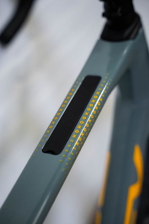 The Grifn has 11 mounting points for a 100% personalised setup. With three mounting points on and under the down tube and three mounting points on the seat tube, you can fully determine the position of your bottle cages and frame bag. You also have two mounting points on the top tube for an extra bag or toolkit. You can cleverly hide these under a handy cover.