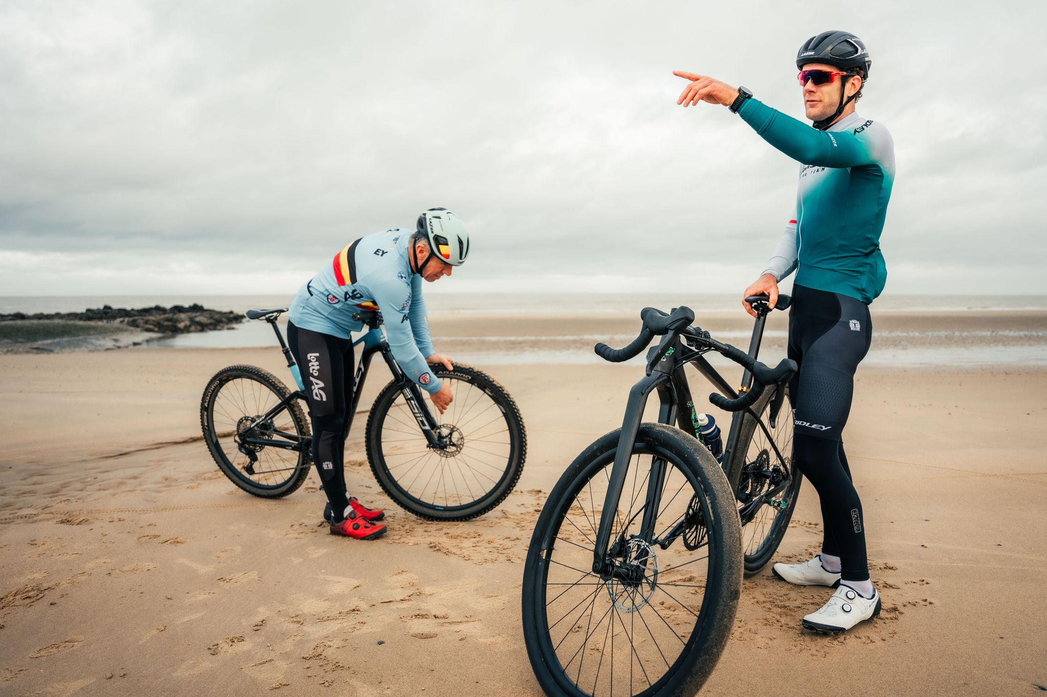 Success in beach racing requires riding in echelons. “You have to conserve energy and rely on other riders to take the lead. There’s always someone willing,” laughs Meirhaeghe. Soete adds, “The pace is so high that early breakaways are unlikely. Anyone who goes solo will most likely hit a wall.”