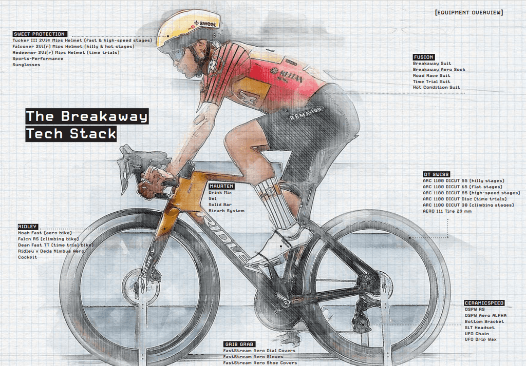 Project Breakaway revolves around the development process of the very best tools for the Breakaway Boys. Thanks to the clothing by Fusion, the accessories from Sweet Protection, the wheels from DT Swiss, the components from CeramicSpeed, the nutrition from Maurten, the gloves and covers from GripGrab, and of course our Noah Fast, the team is ready to perform at the highest level!