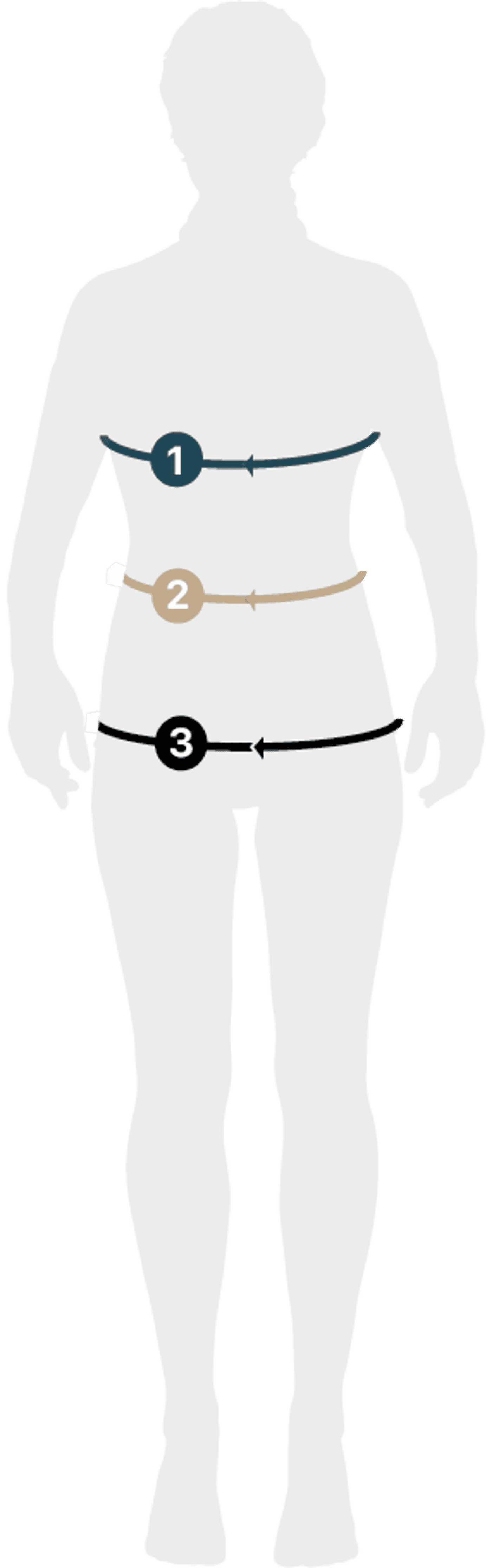 2. Cintura: mida la parte más estrecha de su cintura con una cinta métrica y mantenga la cinta métrica en posición horizontal.
