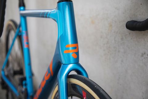 El cuadro de esta bicicleta increíblemente ligera y equipada con frenos de disco pesa solo 780 gramos (tamaño M). La bici completa puede estar fácilmente por debajo de los 7 kg.