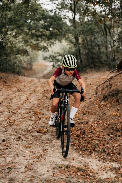 La géométrie du YUNGSTR est unique et sans compromis : réactive et joueuse comme un pur vélo de route, tout en offrant la stabilité nécessaire sur les sections gravel ou les circuits de cyclo-cross techniques. Il ne s’agit pas d’une géométrie d’adulte réduite, mais d’un design conçu dès le départ pour les enfants. De plus, la potence du YUNGSTR se remplace facilement, afin d’accompagner la croissance du jeune cycliste.