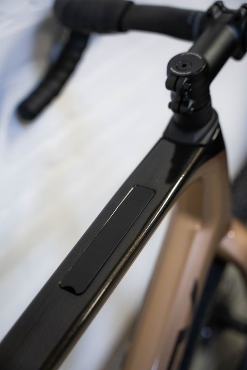 Het frame biedt de mogelijkheid om de kabel voor een achterlicht intern door de bovenbuis te leiden, waar hij bij de zitbuis uitkomt. Tegelijkertijd zijn deze kabelpoorten mooi weggewerkt, dus als je ze niet gebruikt, zul je ze nauwelijks opmerken op je frame.